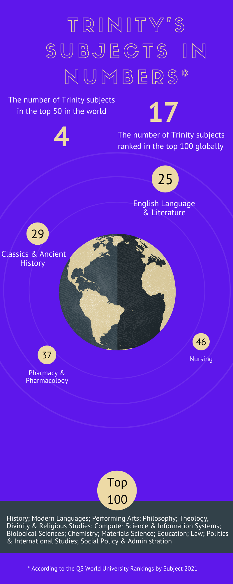 - Trinity is ranked 25th in English Language and Literature